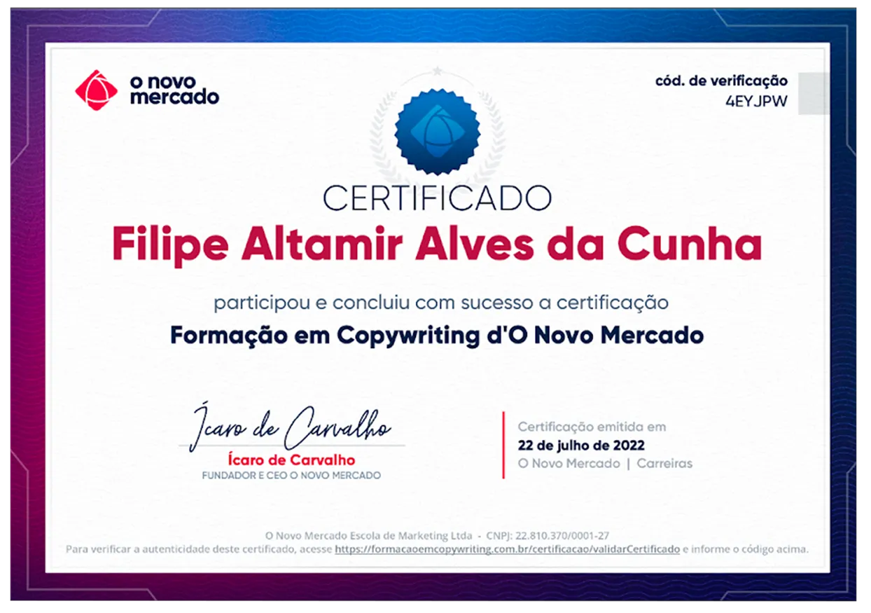 COPYWRITER CERTIFICADO PELA MAIOR FORMAÇÃO DE COPYWRITERS DA ATUALIDADE